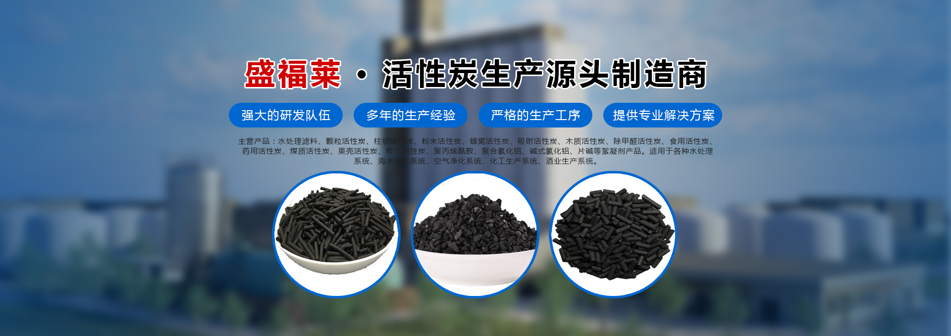 河南盛福萊環??萍加邢薰臼且患覍I銷售各種規格型號活性炭、污水處理藥劑、碳源的公司,位于中原凈水材料基地-鞏義市,是從事各類活性炭及相關產品生產、研發及銷售的一體化企業。主營產品:水處理濾料、顆粒活性炭、柱狀活性炭、粉末活性炭、蜂窩活性炭、吸附活性炭、木質活性炭、除甲醛活性炭、食用活性炭、藥用活性炭、煤質活性炭、果殼活性炭、椰殼活性炭、聚丙烯酰胺、聚合氯化鋁、堿式氯化鋁等絮凝劑產品、碳源,適用于各種水處理系統、海水淡化系統、空氣凈化系統、化工生產系統、酒業生產系統。服務于各種大、中、小型自來水廠、石油化工廠、造紙印染廠、鋼鐵廠、發電廠、食品廠、冶金廠等行業。河南盛福萊環??萍加邢薰緞摿⒁詠?